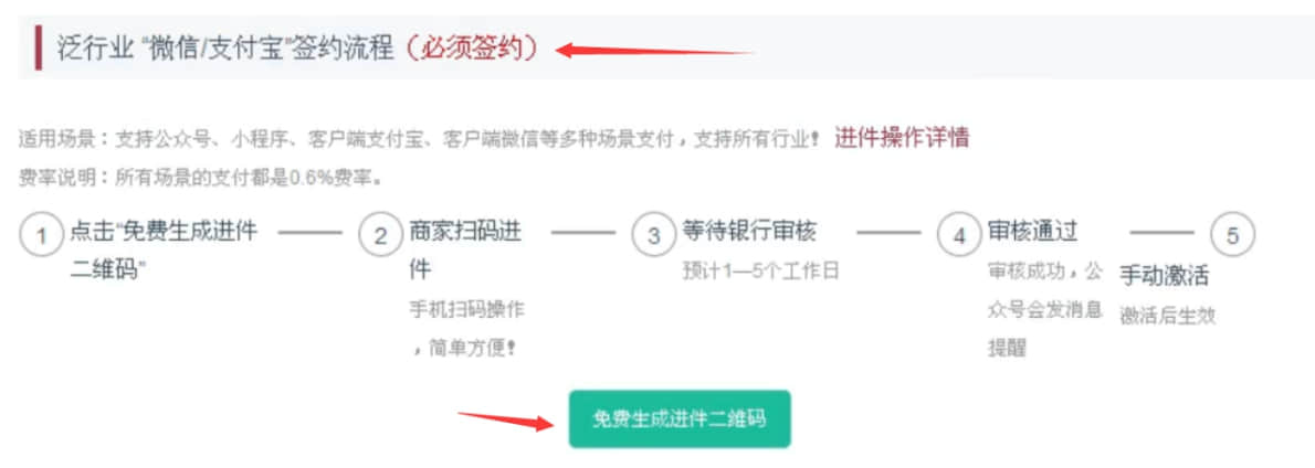 2、【簽約管理】----點擊【免費生成進件二維碼】;