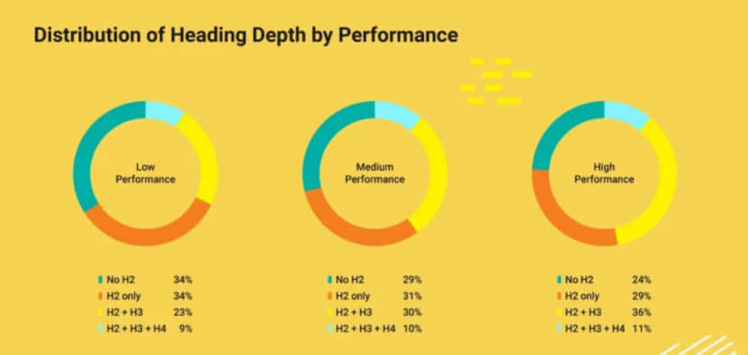 至關重要結果:H2+H3為**組成,36%包括H2H3的文章內容,在總流量、谷歌排名層面主要表現更優。另一方面,文章內容中盡量避免出現H4標識。過度優化的文章內容,非常容易讓閱讀者造成厭倦心態。